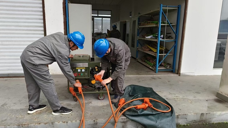 国网江津供电公司员工在输电检修中心检查、保养移动式融冰装置。(王栋 摄)