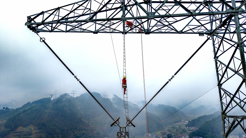 国网重庆超高压公司员工对±800千伏锦苏线开展停电检修消缺作业,全力确保该线路迎峰度冬期间安全稳定运行。(牟伟 摄)