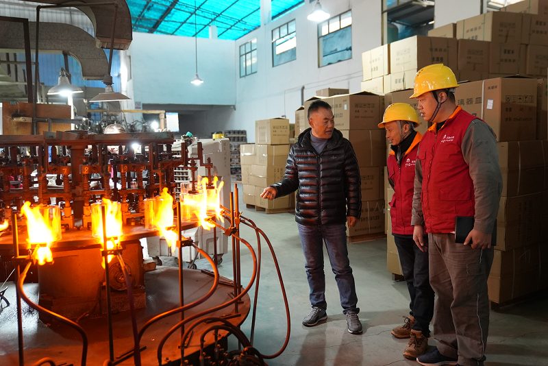 国网合川供电公司员工走访重庆市远铃玻璃有限公司了解客户用电需求。(刘思言 摄)