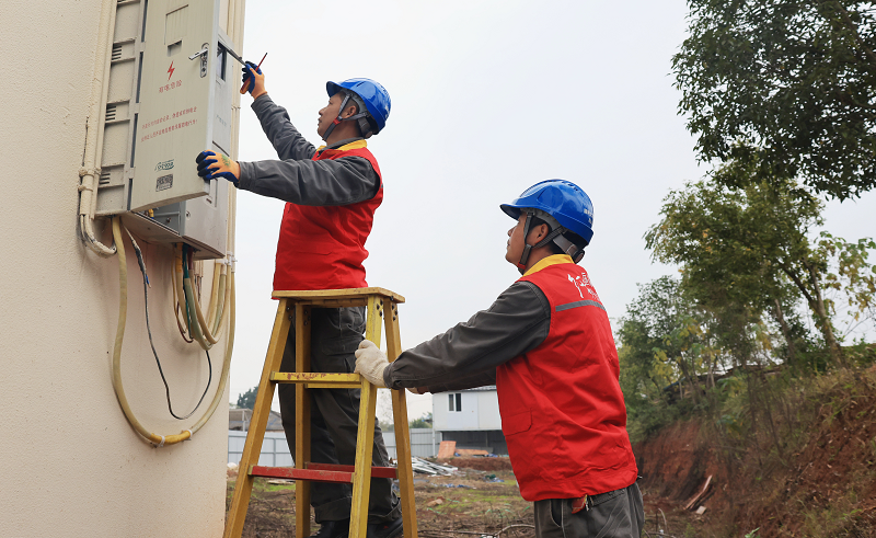 国网大足供电公司员工在智凤街道登云社区重庆富葛实业有限公司为客户检查用电设备。(罗永恒 摄)