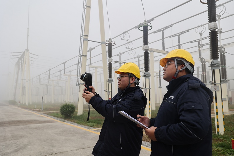 国网忠县供电公司变电运维人员在220千伏石马变电站进行设备巡视。(杨逸 摄)
