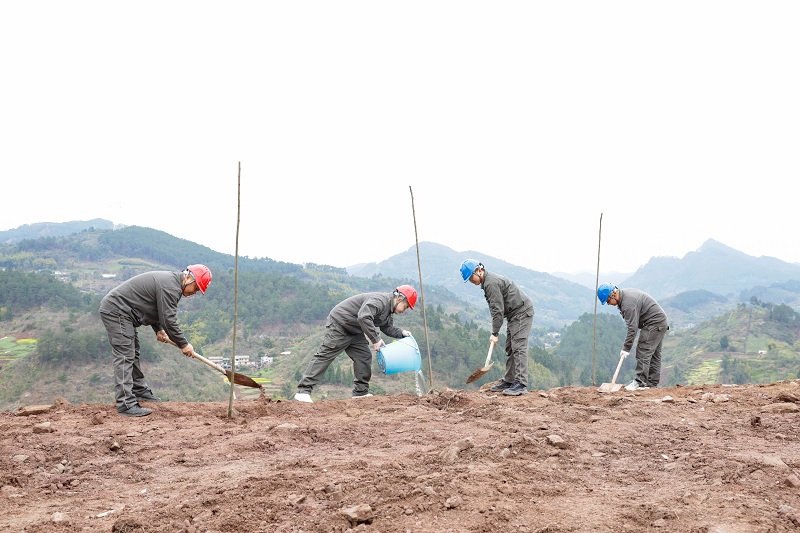 国网武隆供电公司青年员工在凤山街道万银村开展植树活动。(夏周 摄)