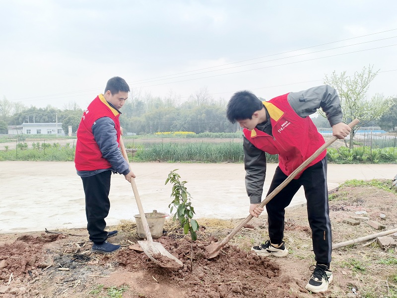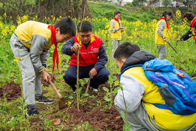 国网大足供电公司青年志愿者在回龙镇白鹤村开展植树活动。(蒋虹羿 摄)