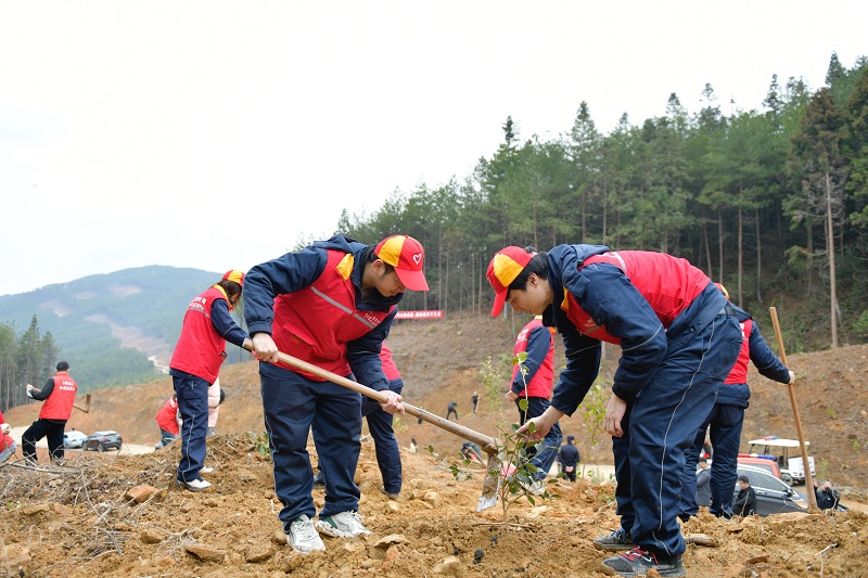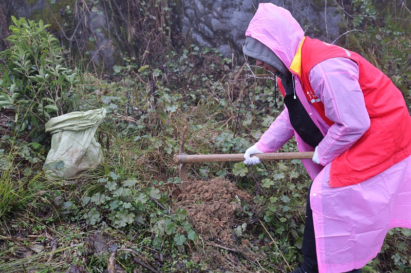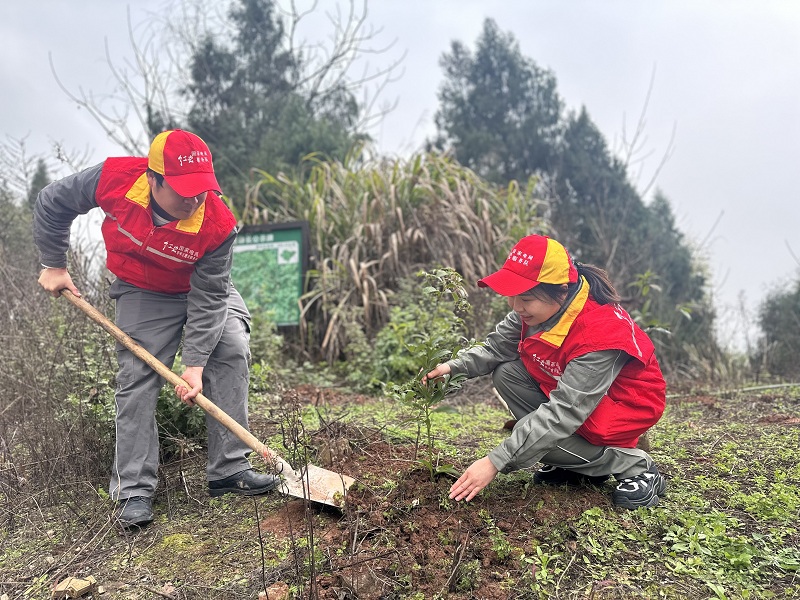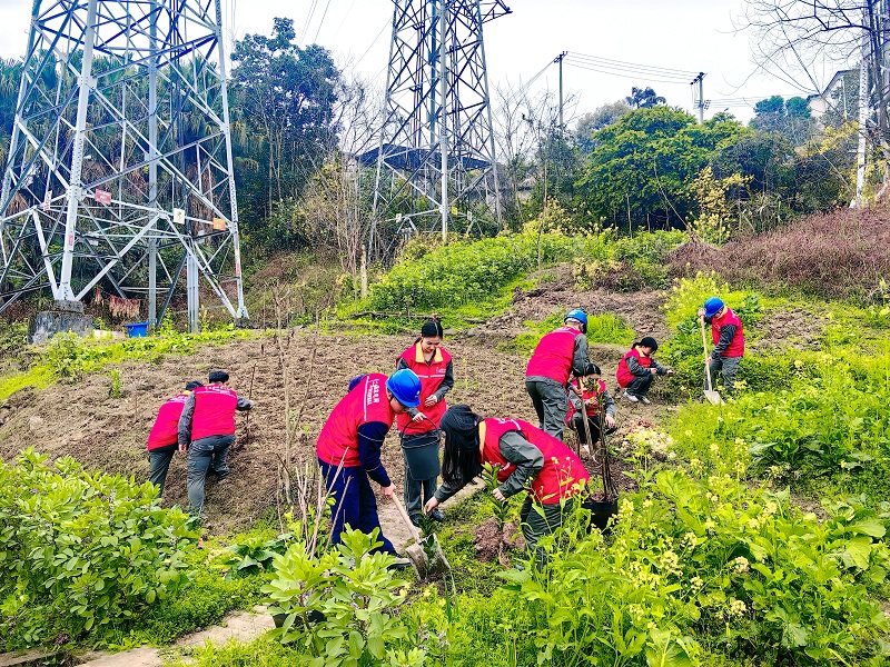国网江津供电公司青年志愿者在先锋镇保坪村开展植树活动。(程雨 摄)