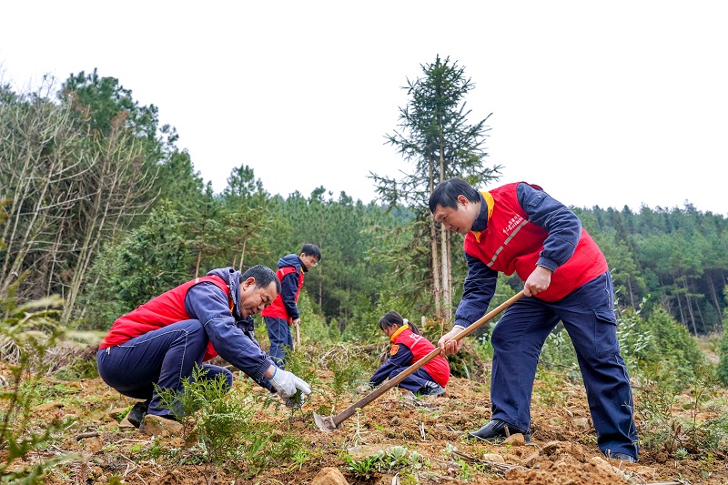 国网开州供电公司员工在临江镇毛垭林场开展植树活动。(安姚鑫 摄)