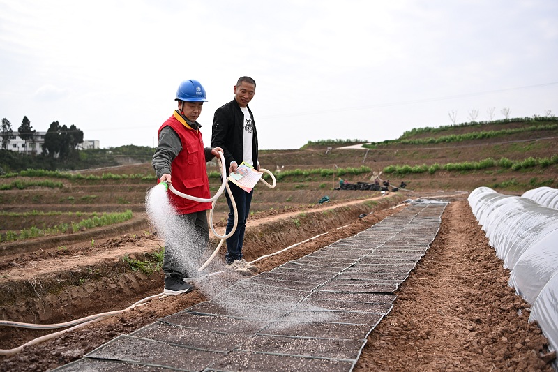 国网重庆市北供电公司统景供电所员工走进田间地头宣传安全用电知识。(向江微 摄)