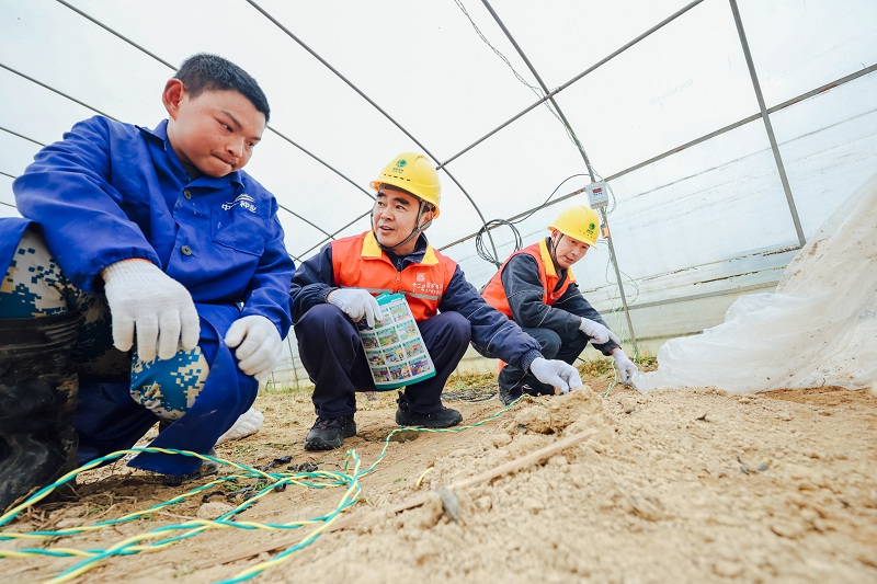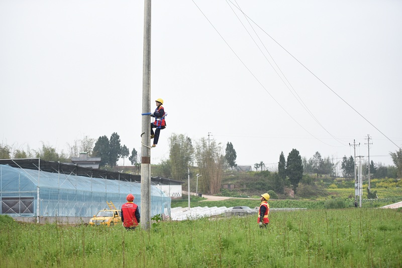 国网长寿供电公司员工为辖区农户用电线路开展增容改造,提升春耕供电质量。(况敏 摄)