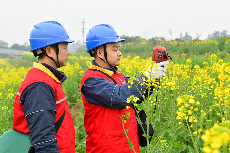 国网永川供电公司员工在荣昌仁义高标准农田检查配电设施。(赖小龙 摄)