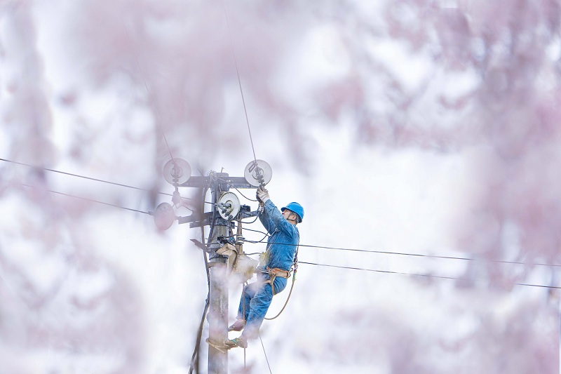 国网巫山供电公司员工在福田10千伏线路开展带电作业,护航春耕用电。(尹瑶瑶 摄)