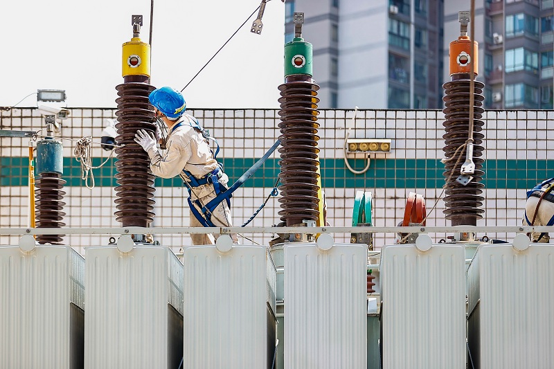 国网重庆市南供电公司员工检修110千伏高峰寺1号主变压器。 (龚超 摄)