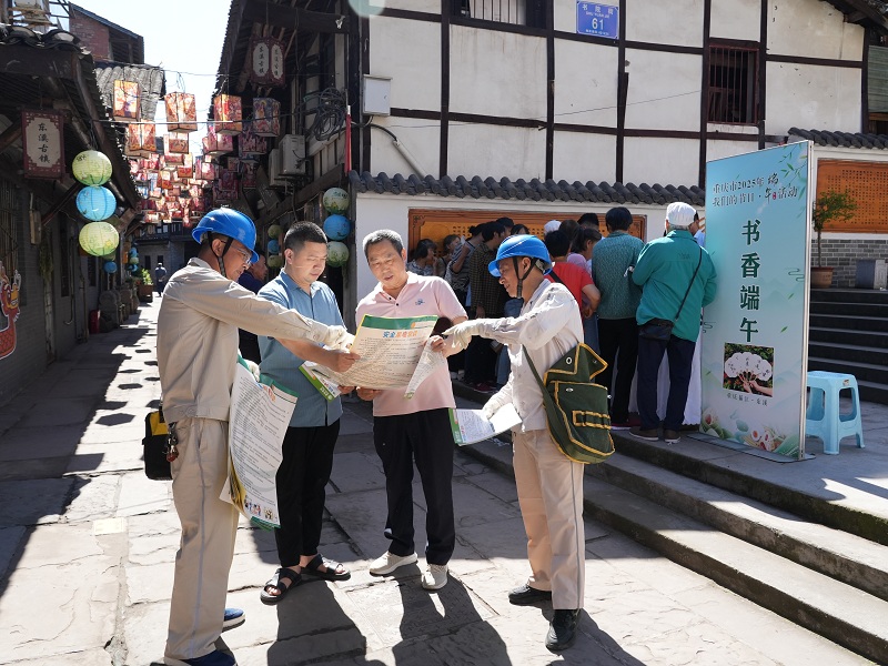 国网綦江供电公司员工在东溪古镇为居民商户宣传用电安全知识。(袁巧 摄)