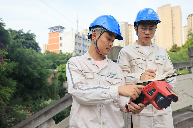 国网大足供电公司员工在大足城区开展10千伏禅观线巡视测温,确保线路安全稳定运行。(罗永恒 摄)