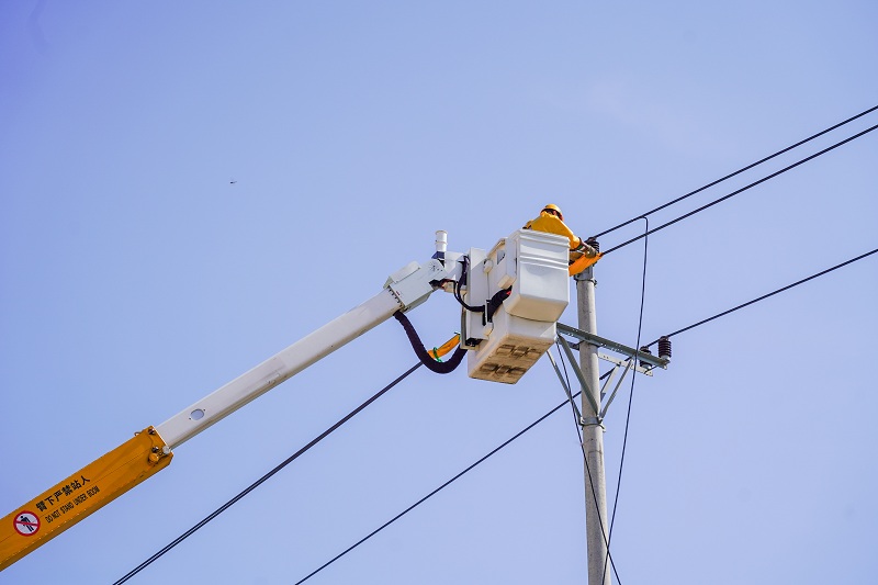 国网南川供电公司员工在南平镇开展带电作业,保障端午节期间可靠用电。(吴莉 摄)