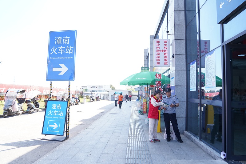 国网潼南供电公司员工在潼南火车站开展节前安全用电宣传。(屈思芬 摄)