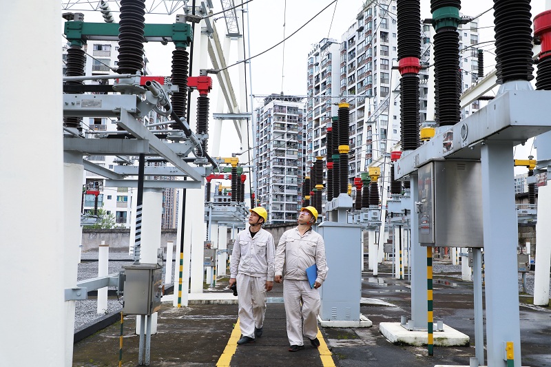国网石柱供电公司员工对110千伏大地坪设备进行检查巡视。(王紫晗 摄)