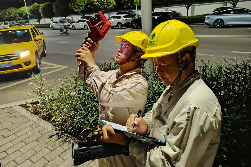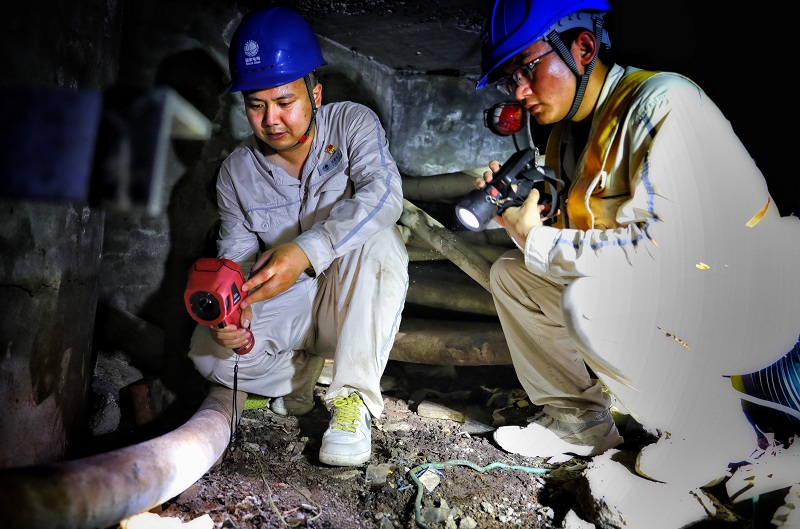 国网大足供电公司员工在大足区西禅社区翠丰路电缆通道开展电缆特巡工作。(杨发光 摄)