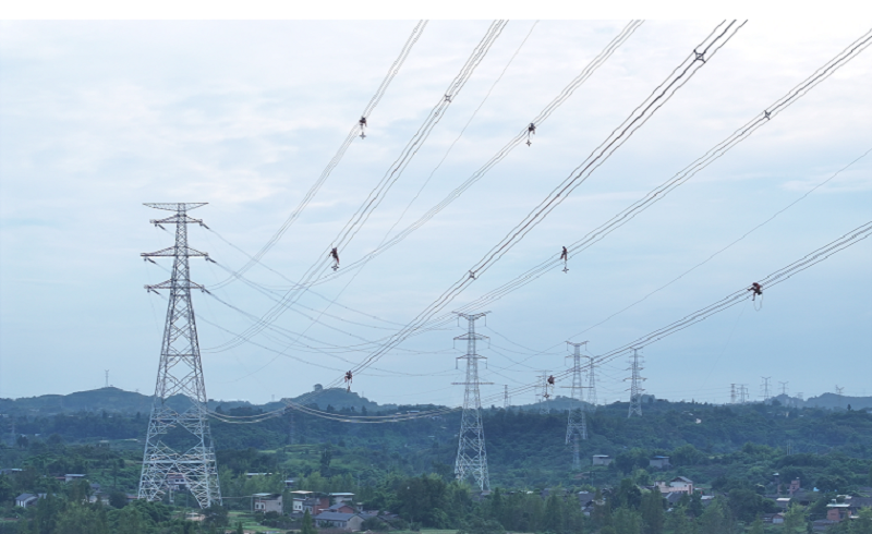 500千伏渝岳线下跨220千伏线路7次、110千伏及以下线路30余次,并下跨多条高速公路、铁路及通航河道,涉及多个行业和部门配合作业,协调与施工难度均极高。项目自2024年启动建设,2025年3月1日开始放线,9月26日完成跨嘉陵江段放线,10月19日全线贯通。