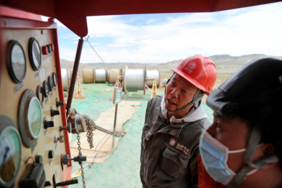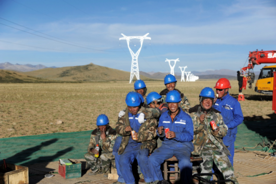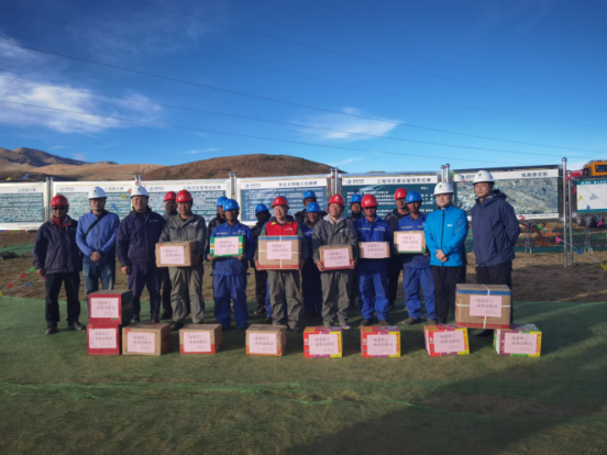 (图说:7月13日,随着最后一根导地线展放完成,由重庆送变电公司承建的阿里与藏中联网工程包11标段提前17天全线贯通。贯通当天,国家电网重庆电力公司工会副主席李炼一行亲赴施工现场,为奋战在一线的员工送去慰问。
